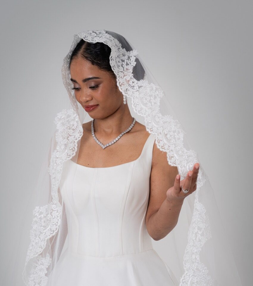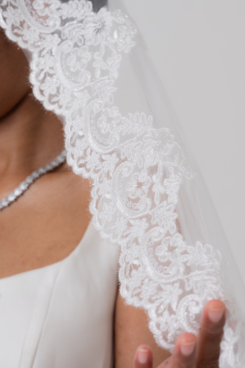 Long veil featuring delicate classical embroidery. A timeless beauty that will remain stunning through the years, perfect for brides who appreciate elegance and tradition.